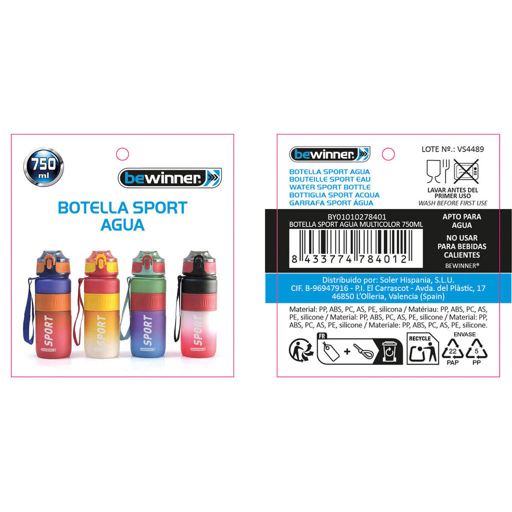 Vandflaske Bewinner Multifarvet 0,75 L 7,6 x 27,5 cm (12 enheder)